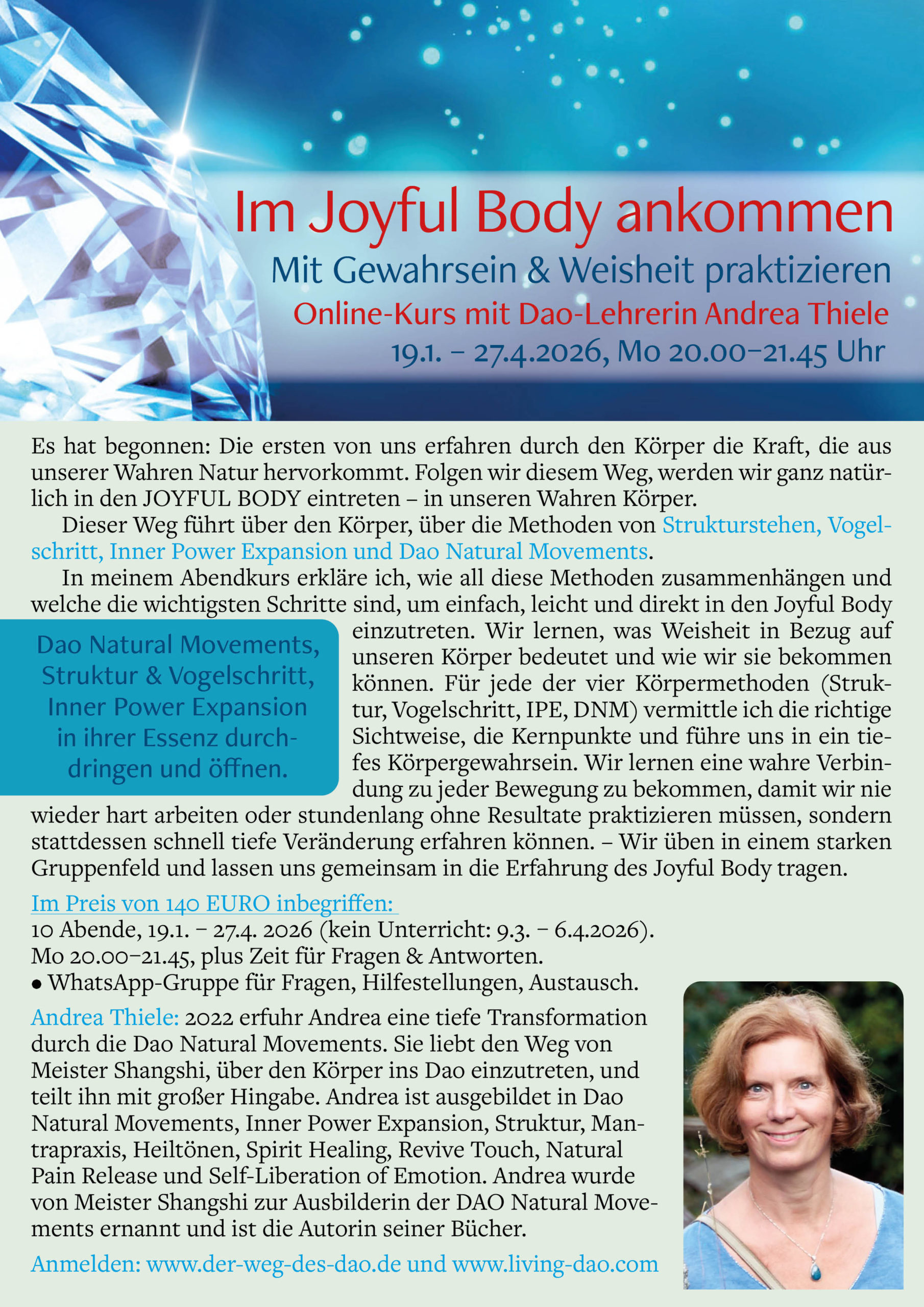 Buchbestellung Buchbestellung BUCHBESTELLUNGBitte aktiviere JavaScript in deinem Browser, um dieses Formular fertigzustellen.4 Second Enlightenment, deutsch 50,00 €110 Dao-Weisheitskarten, englisch. 50.00 €Dao Buch groß 29.96 €Mantra-Karten-Set, deutsch, DinA4. 44.00 €Dao Natural Movements. deutsch 37,45 €Dao Natural Movements. englisch 37,49 €Dao Buch klein 8.56 €Dao book english small 8.56 €Amitabha Broschüre, deutsch 10.70 €Amitabha booklet, english 10.70 €TCM-Blau/vs Grippe 7.49 €TCM-blue/ Flu - english 7.49 €TCM-Rosa/Herz 7.49 €TCM-rosa/heart - english 7.49 €TCM-Grün/Rücken 7.49 €TCM-green/back - english 7.49 €TCM-Türkis/Durchfall 7.49 €TCM-turquoise diarrhea - english 7.49 €TCM-Gelb/Augen 7.49 €TCM-yellow/eyes - english 7.49 €TCM-Rot/Energy-Bouncing 7.49 €TCM-red/bouncing - english 7.49 €TCM-Mittelgrün/Blutdruck 7.49 €TCM green/blood pressure - english 7.49 €TCM-Lilablau/vs.Zahnschmerzen 7.49 €TCM-purple blue/touthache - english 7.49 €TCM-Grün/Wunderkraut 7.49TCM-green/miracle herb - english 7.49 €Dao-Mandala DinA4 11,90 €Dao-Mandala DinA5 8,33 €Dao-Mandala DinA6 5.95 €Dao-Mandala Mini, Scheckkarte 5,00 €4 Second Mandals, DinA6, 5,95 € Name *VornameNachnameE-Mail *Versandadresse (Straße, Nummer, PLZ, Ort) *Ihre NachrichtAnzahl von Mehrfachbestellungen bitte hier eintragenIch habe die AGB's gelesen und stimme zu.Ich habe die Erklärung zum Datenschutz gelesen und stimme zu.Ich stimme zu, dass im Rahmen der Bestellung erhobene personenbezogenen Daten (Name, Adresse, Email) vom Dao Verlag zur Bearbeitung der Bestellung verarbeitet werden. Meine Einwilligung kann ich jederzeit widerrufen. Darüber hinaus erfolgt keine Weitergabe an Drittezuzüglich Versandkosten Ich möchte den Dao Verlag / Living Dao Newsletter bestellenkostenpflichtig bestellen AGB’s / Versandkosten